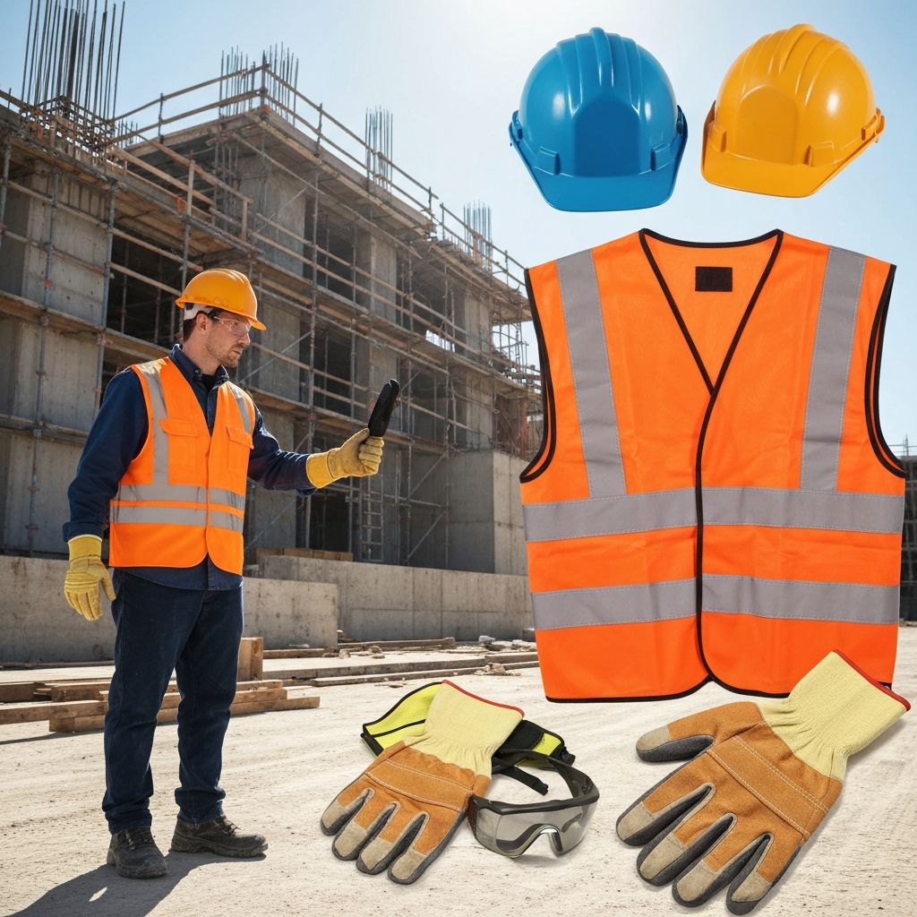 Full PPE kits including helmets, vests, gloves, footwear, and respiratory protection.